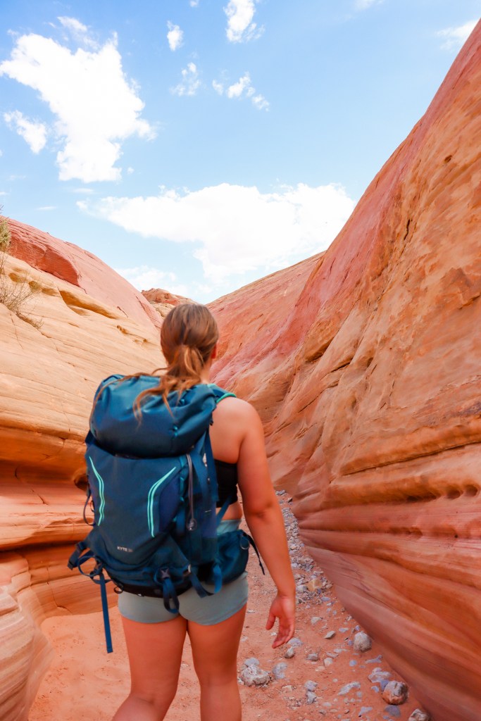 I have so many good things to say about this trail… But first, Oh. My. Gosh. I didn’t know what to expect going into this trail except for that it was supposed to be a must do. As soon as I got on my way, my jaw hit the floor. The colors, the textures, the vastness of the area. It was all so much to take in. It goes from standing on top of the rocks (Fire Wave) to going down in between them (Slot Canyon shown here). If you only have time for one hike in VFSP, please let it be this one! *Reminder it is closed during peak summer weather to prevent heat sickness.