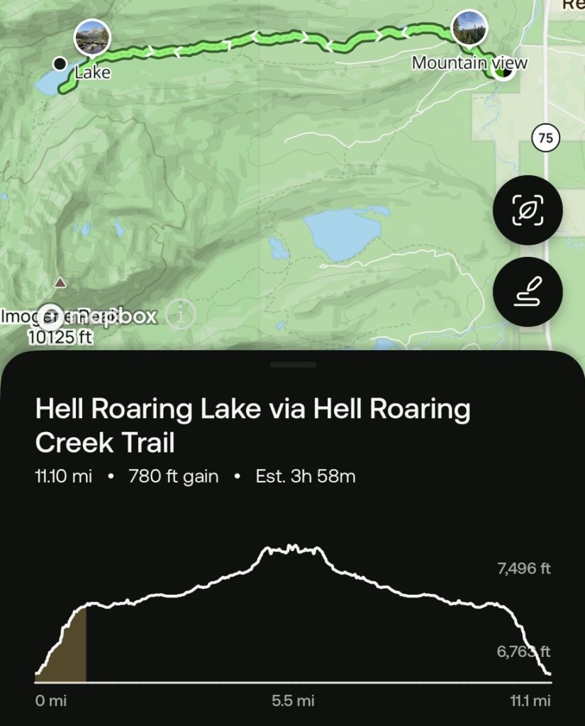Hell Roaring Lake Via Hell Roaring Creek Trail is another option and is a longer trail and you don’t have to deal with the incredibly rough road. It’s 11 miles with only 780 feet of gain, so elevation wise – it’s on the easier scale, but 11 miles can feel like you’re hiking forever!